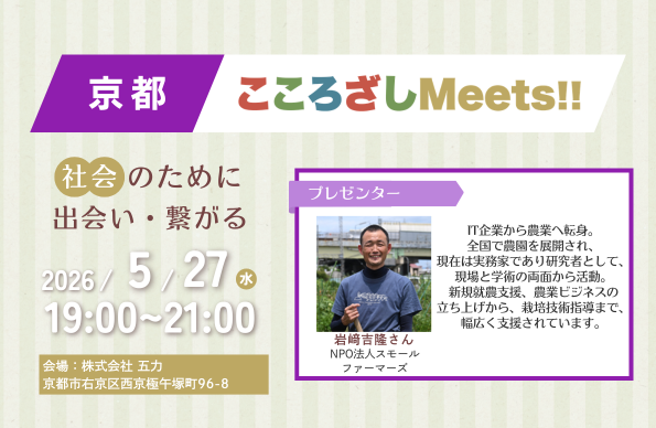 この度は千の公器PROJECT京都HUBこころざしMeetsに関心をお寄せいただき、ありがとうございます。