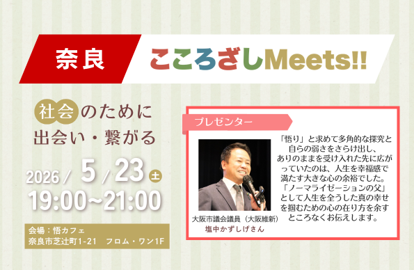 【5/23(土)】第9回奈良こころざしMeets!! 開催案内