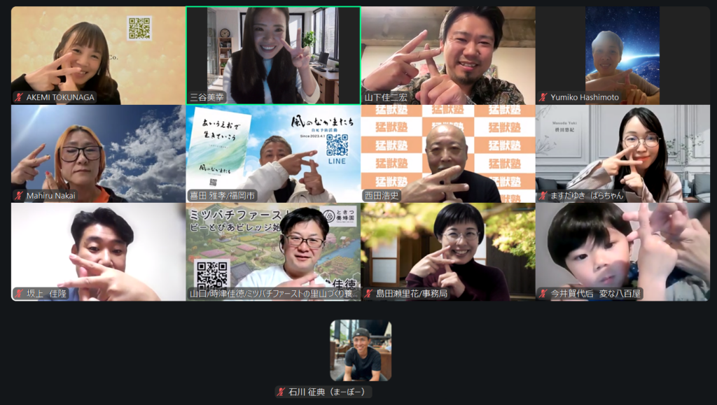 全国の仲間が集まる「オンラインこころざしmeets」。毎月第一木曜日20:00~開催しています。