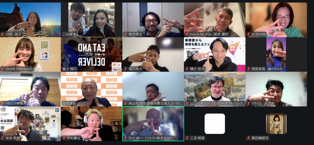 全国の仲間が集まる「オンラインこころざしmeets」。毎月第一木曜日20:00~開催しています。